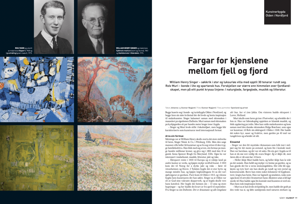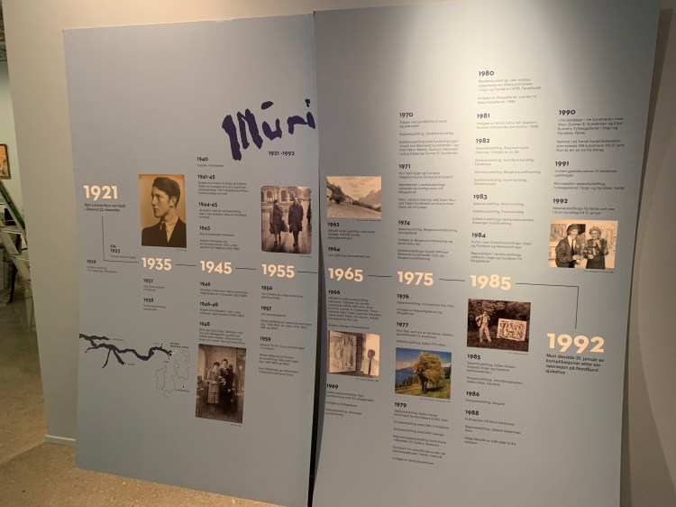 Ja, ja. No er vel våren snart på veg og måleria til Muri som har pryda veggane i Sogn og Fjordane Kunstmuseeum så lenge, vil om kort tid være på veg heim til sitt. Nokre skal tilbake i kunstmagasina til “forvaring”, medan andre skal heim til sine private heimar. Nokre skal tilbake på “jobb” og hengast opp i all offentligheit på skular, kommune- eller forsamlingshus. La oss håpe at fleire kunstmuseeum og private eigarar vil vise fram sine Murimåleri. Dei er altfor fine til å plasserast på lager, eller i bortgøymde korridorar.