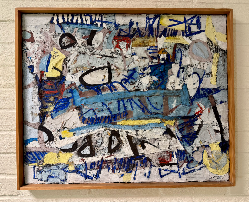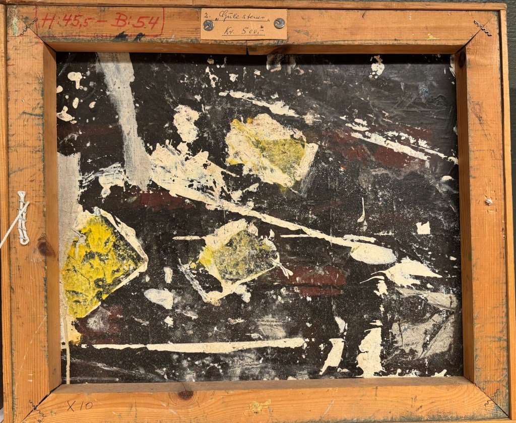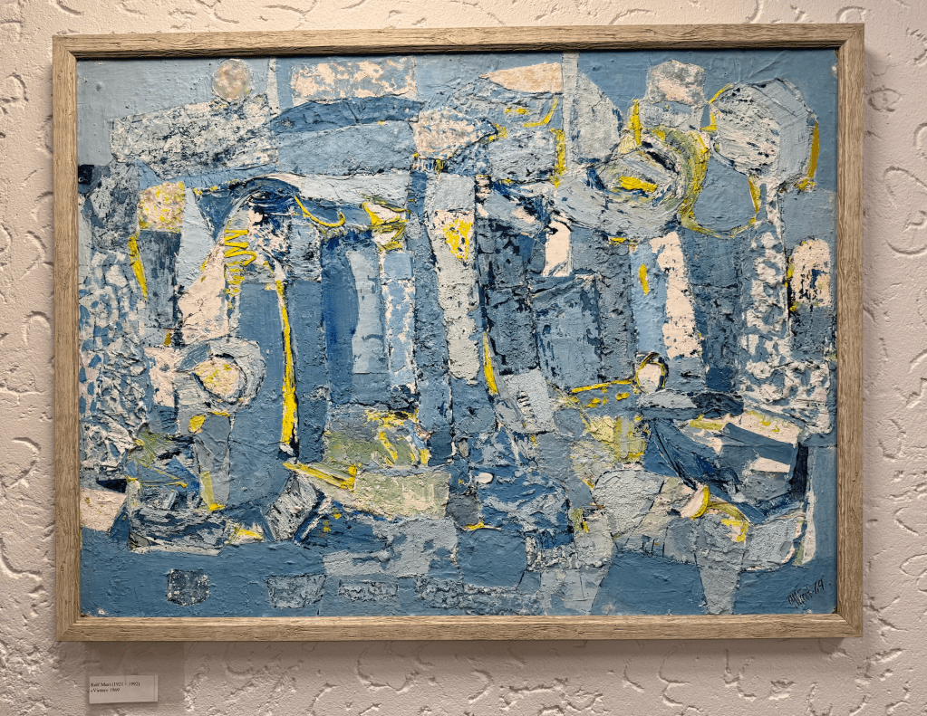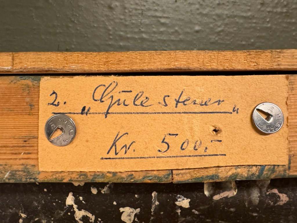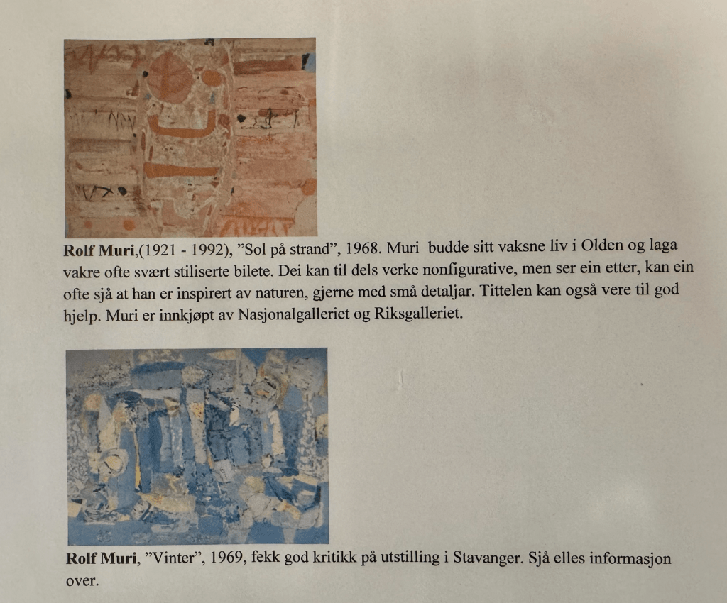 Stryn Kulturhus februar 2025: Etter litt leiting fann eg endeleg Muri måleriet “Gule Stener”. Dette står lagra mellom alle Kaare Sunde sine måleri som Stryn Kommune tidlegare overtok.