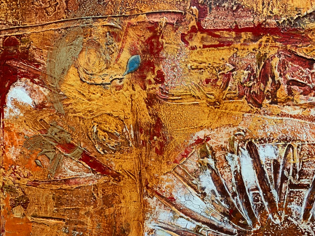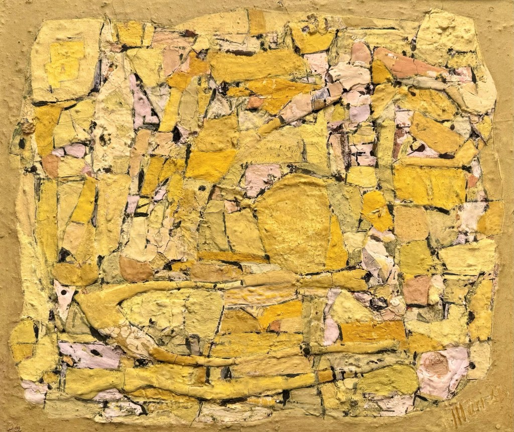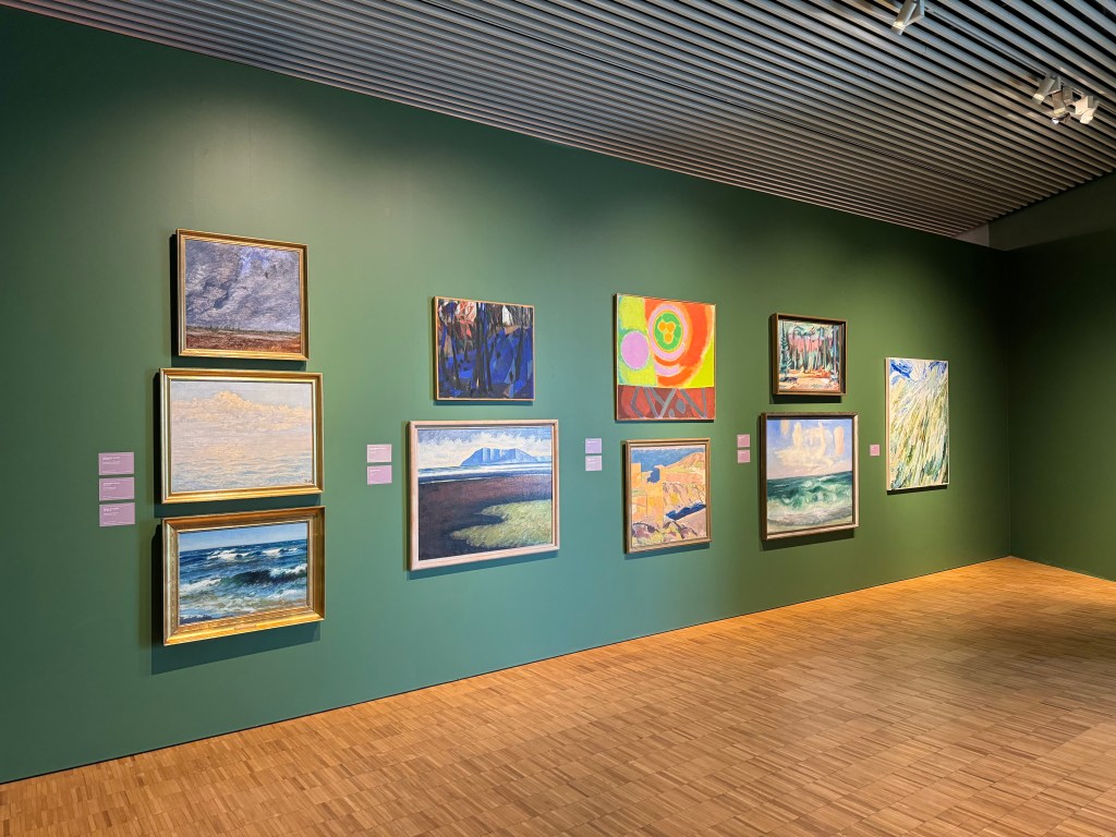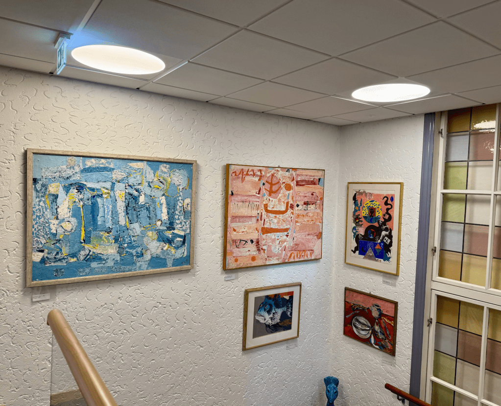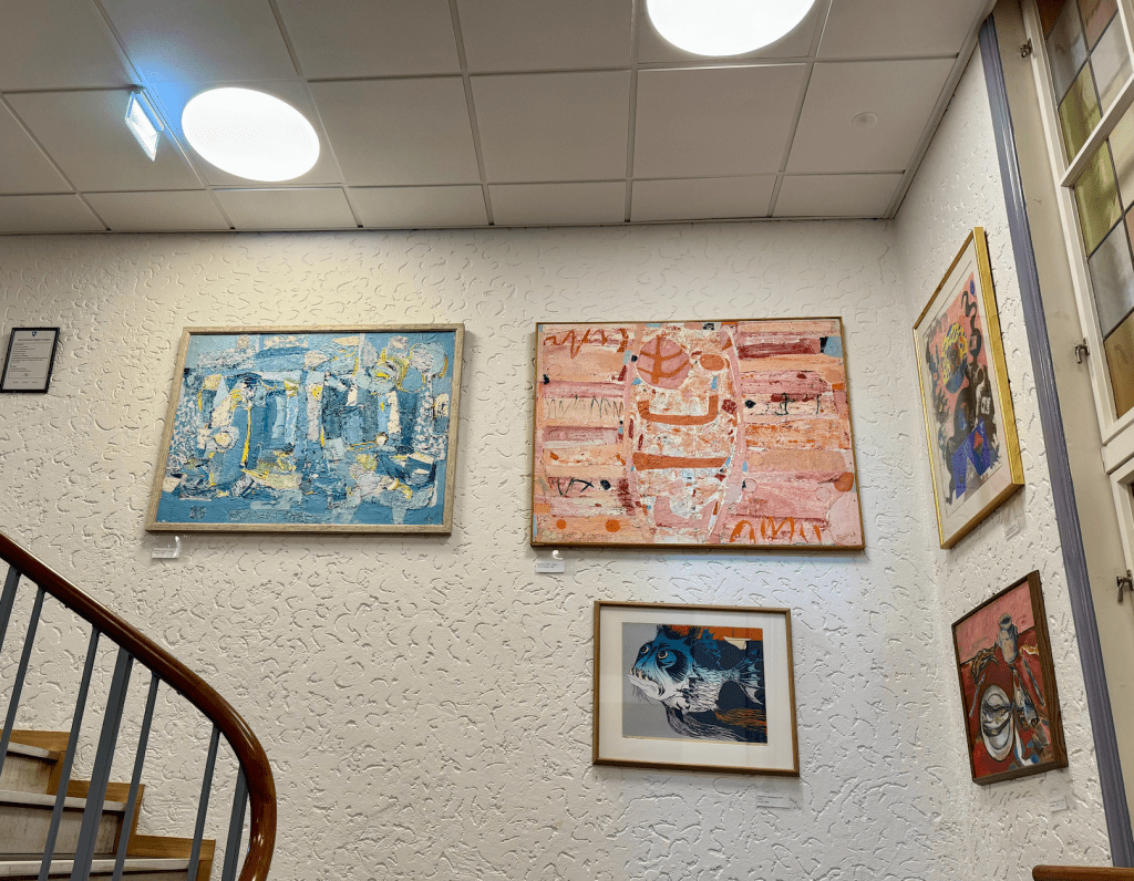 Stryn Kulturhus februar 2025: Etter litt leiting fann eg endeleg Muri måleriet “Gule Stener”. Dette står lagra mellom alle Kaare Sunde sine måleri som Stryn Kommune tidlegare overtok.